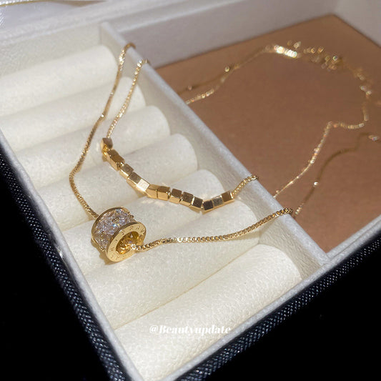 A廠【HN8522】18k真金電鍍鋯石雙層項鍊2025新款氣質百搭鎖骨鏈輕奢高級感頸鍊 25.04-3