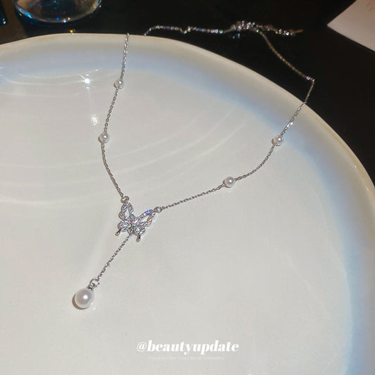 A廠【HN8423】鋯石珍珠蝴蝶吊墜項鍊輕奢小眾時尚設計鎖骨鏈通勤百搭氣質項鍊飾女 25.04-3