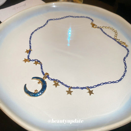 A廠【HN8436】滴油星星月亮吊墜項鍊時尚個性設計感鎖骨鏈輕奢氣質首飾女高級感 25.04-3