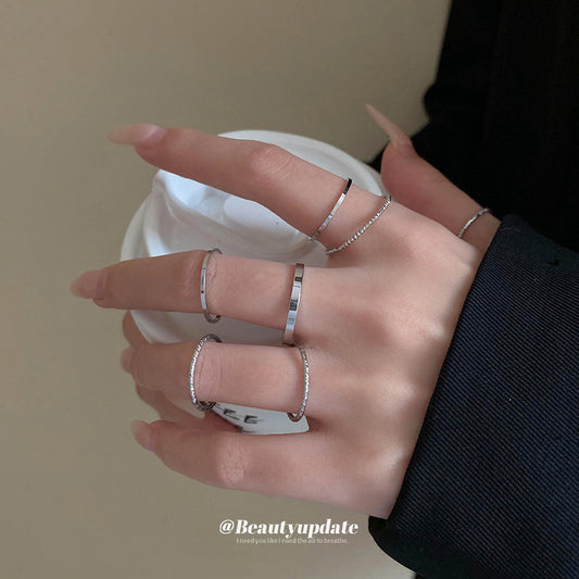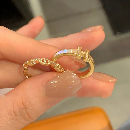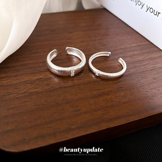 A廠【HR2219】冷淡風拉絲鋯石開口戒指輕奢簡約設計食指戒東大門精緻高級感指環 24.08-3