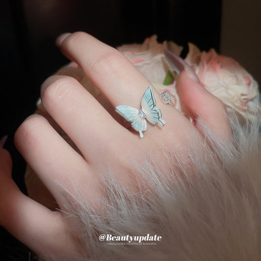 A廠【HR2212】ins風鏤空藍粉鋯石蝴蝶開口戒指韓繫氣質甜美指環唯美氛圍感手飾 24.07-5