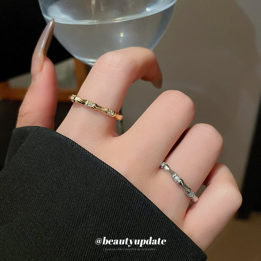 A廠【HR2230】新中式鑲鑽竹節開口戒指小眾簡約設計感指環時尚百搭高級感手飾女 24.08-5