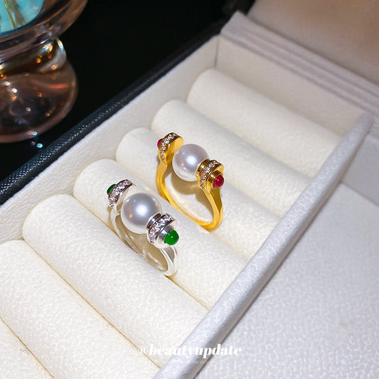 A廠【HR2319】真金電鍍鋯石珍珠開口戒指女小眾百搭食指戒中古vintage輕奢手飾 24.11-2