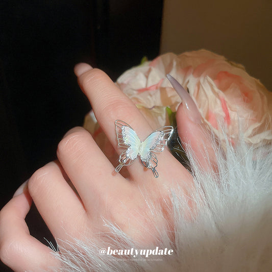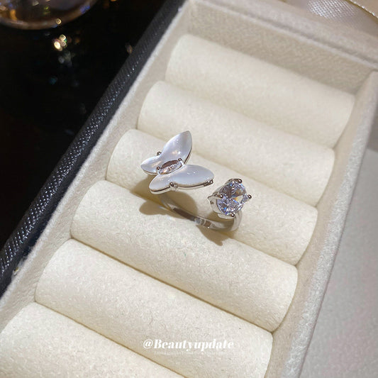 A廠【HR2293】鑲鑽貝母蝴蝶開口戒指女甜美輕奢公主風食指戒唯美高級感指環 24.10-1