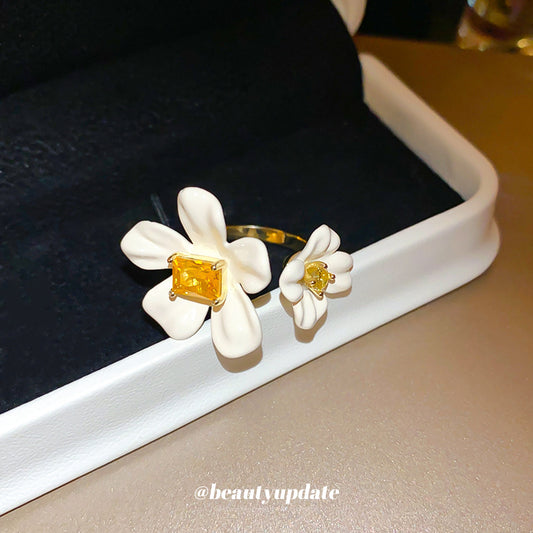 A廠【HR2308】真金電鍍鑲鑽花朵花瓣開口戒指小眾設計感時尚食指戒復古個性指環 24.10-4