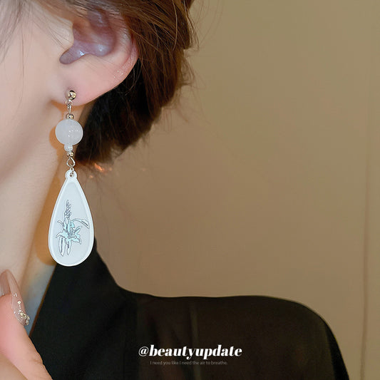 A廠【HE19541】925銀針全新中式樹脂水滴花朵耳環國潮氣質百搭長版耳環復古旗袍耳環女 24.04-2