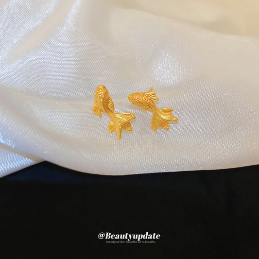 A廠【HE19491】真金電鍍925銀針小巧精緻金魚耳環全新中式時尚耳環個性百搭耳飾 24.04-2
