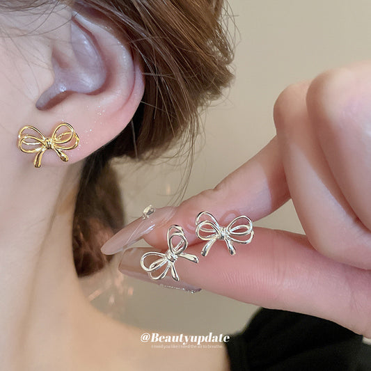 A廠【HE19624】925銀針小巧簡約蝴蝶結耳環韓系時尚ins風耳環氣質高級感新款耳環女 24.04-2