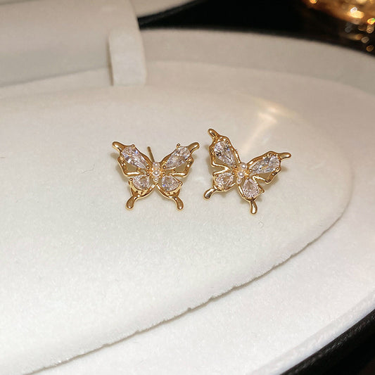 A廠【HE19694】925銀針蝴蝶鋯石耳環高級感輕奢氣質耳環韓國小巧精緻少女心耳飾 24.04-3