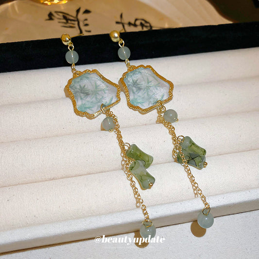 A廠【HE19711】925銀針竹節水墨畫流蘇耳環新中式復古長版耳環小眾時尚氣質耳環 24.04-4