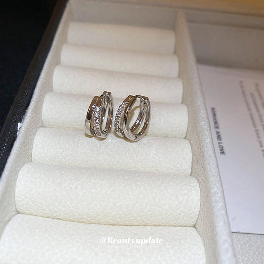 A廠【HE19328】圓形多層鋯石耳環簡約高級感幾何耳環小眾時尚輕奢風新款耳環 24.03-4