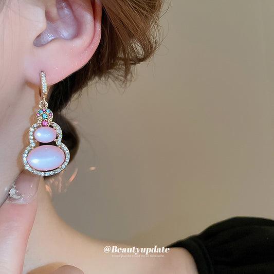 A廠【HE19597】全新中式葫蘆鑲鑽耳扣小眾甜美設計感耳環精緻時尚氣質百搭耳飾 24.04-2