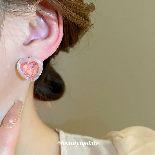A廠【HE19333】925銀針愛心樹脂耳環韓系甜美ins氣質耳環簡約清新設計感耳飾 24.04-1