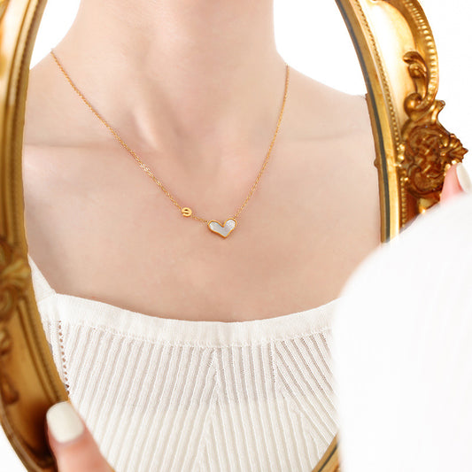 B廠【P1478】愛心鑲嵌白海貝吊墜項鍊英文字母E心機小眾鎖骨項鍊 23-06.12