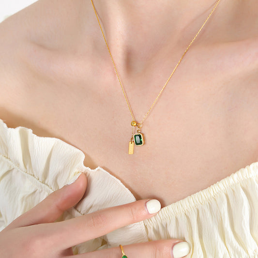 B廠【P1481】Ins風祖母綠鋯石流蘇英文字母印花流蘇簡約項鍊氣質女鎖骨鏈鈦鋼 23-06.12