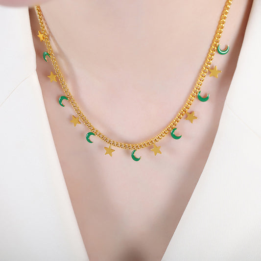 B廠【P1498-9&E434-5】小清新女生甜美係自然星星月亮鎖骨鏈手鍊項鍊鈦鋼女生飾品套裝 23-06.12