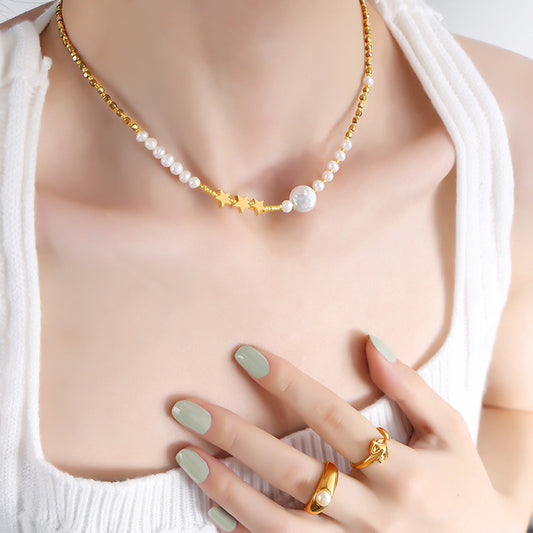 B廠【P1490】韓國小眾設計感博主同款優雅淡水珍珠拼接五角星項鍊氣質鎖骨頸鍊 23-06.12