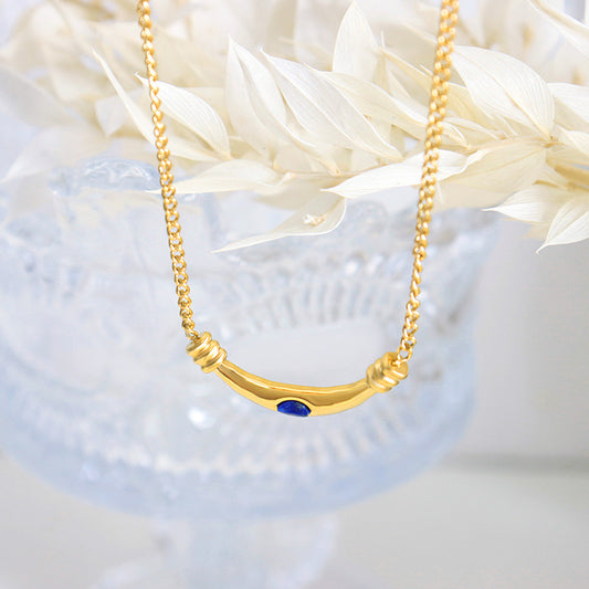 B廠【P1503】圓形復古祖母綠白色打玻璃石顏色可選項鍊鎖骨鏈鈦鋼18K女生飾品 23-06.12