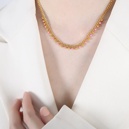 B廠【P1497】法式風格個性小眾幾何滴油圓珠項鍊鎖骨鏈女生晚會同款鈦鋼飾品 23-07.10
