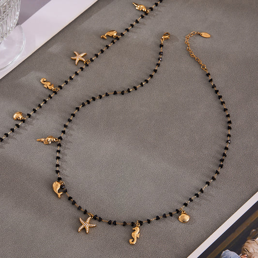 B廠【P1485】歐美飾品不鏽鋼海洋風海星滿鑽DIY吊墜天然水晶碎石項鍊女 25.09-2