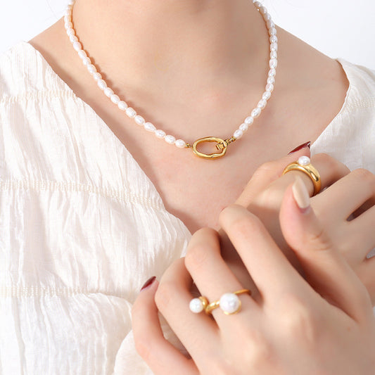 B廠【P1443-E436】氣質時尚個性天然淡水珍珠鎖骨項鍊手鍊首飾鈦鋼時尚流行飾品 23-06.19