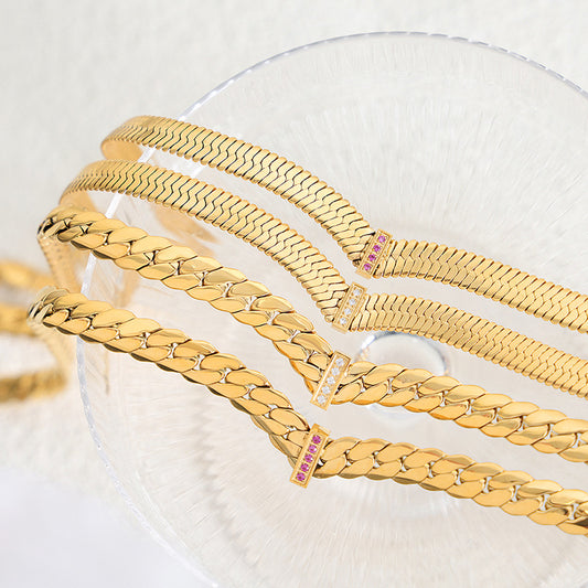 B廠【P1456】歐美多色玻璃石晶瑩剔透疊戴雙層疊戴刀片鏈鎖骨鏈項鍊鈦鋼飾品 23-05.22