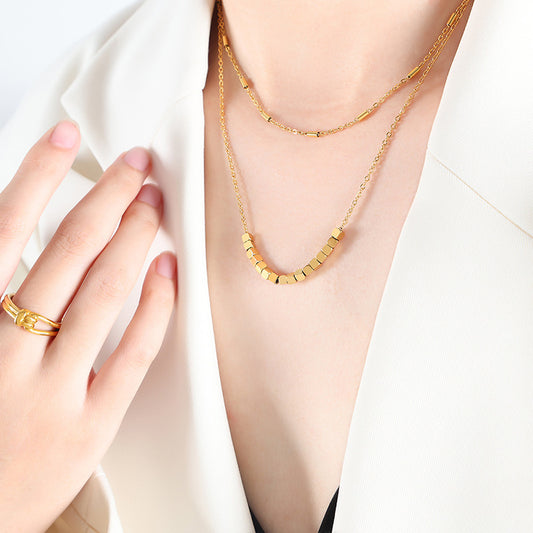 B廠【P1505】甜酷飾品批發幾何小方塊碎銀幾兩鏈條雙層鎖骨流行鎖骨項鍊女生 23-07.10