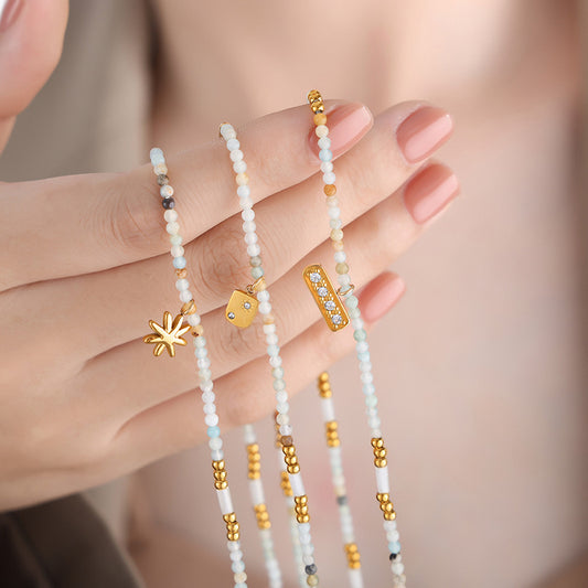 B廠【P1507-9】法式流行簡約百搭獨特天然石手工串珠星星形狀吊墜鈦鋼項鍊頸鍊 23-06.26