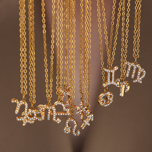 B廠【P1527】夏季小香風十二星座吊墜白羊獅子滿天星吊墜項鍊 鈦鋼鍍18K真金23-07.17