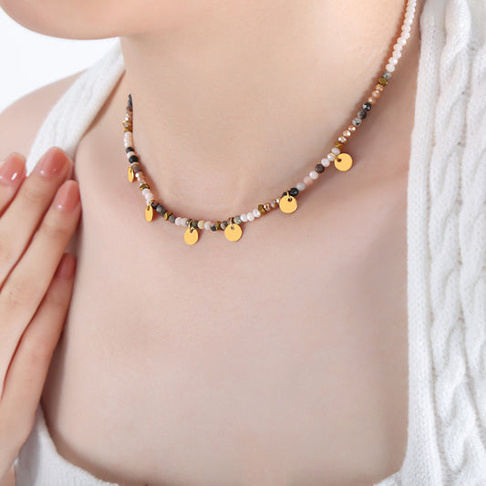 B廠【P1513】ins潮人嘻哈設計個性串珠流蘇圓片多色項鍊項鍊小眾男女同款鈦鋼 23-06.26