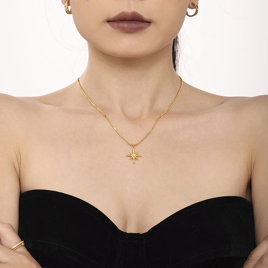 B廠【P1605】 八芒星藍松石黃銅吊墜鎖骨項鍊跨境小眾氣質鍍18k真金首飾 24.11-5
