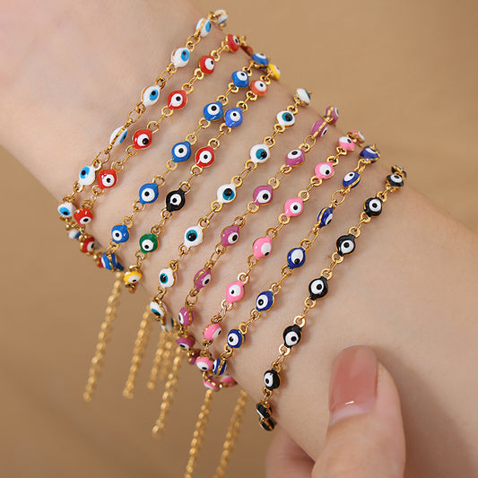 B廠【P1528-E459】歐美不掉色多彩多色個性眼睛項鍊鎖骨鏈手鍊女鈦鋼項鍊飾品套裝23-07.17