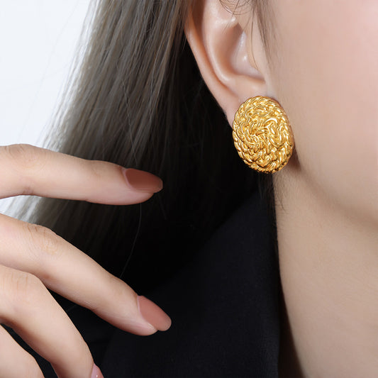 B廠【P1543-F917】法式熱銷款圓牌肌理感小眾輕奢網紅流行飾品鎖骨項鍊鈦鋼耳環套裝23-07.17