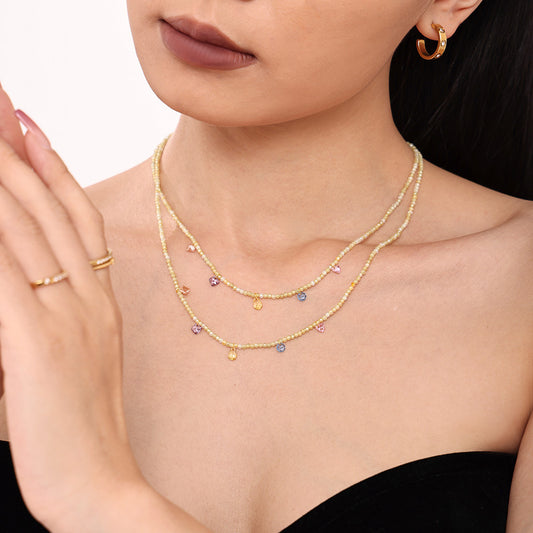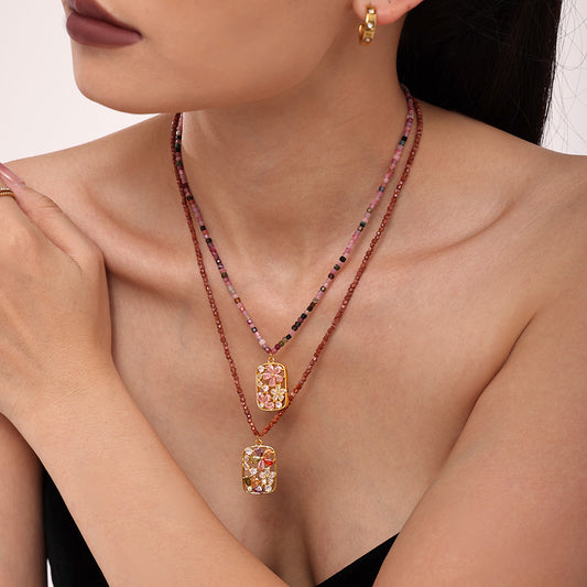 B廠【P1627】彩色鋯石小花銅吊墜天然石手工串珠方糖鎖骨項鍊奢華配件女 24.11-5