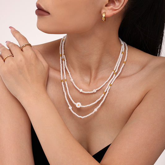 B廠【P1636】貝珠小雛菊手工串珠鎖骨項鍊女田園風花朵配件首飾 24.11-5