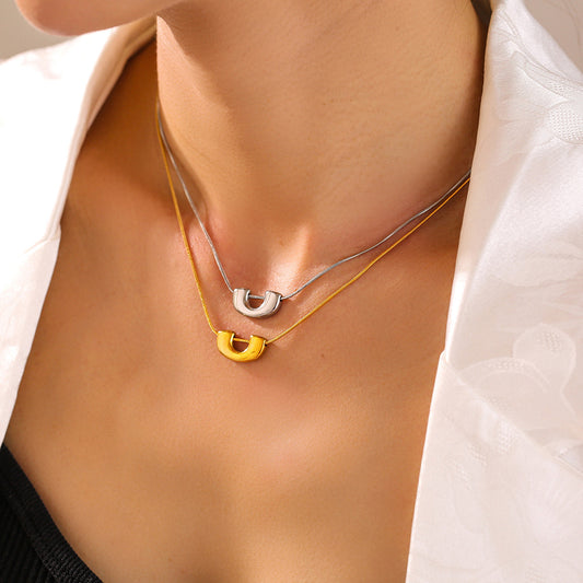 B廠【P1635】法式新款U形吊墜鎖骨項鍊耳環小眾幾何不鏽鋼鍍18k真金首飾套裝 24.08-2