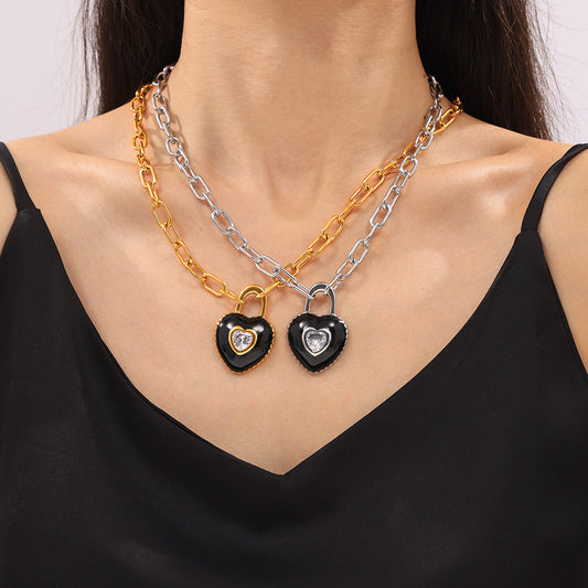 B廠【P1854】赫本風個性設計桃心滴油鑲鋯石吊墜鈦鋼鍍18k金時尚百搭項鍊 24.07-1