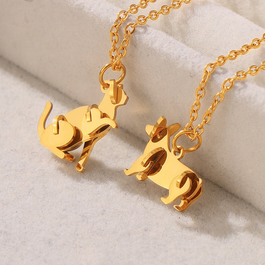 B廠【P1857】chic風輕奢鈦鋼小鹿小狗吊飾飾品鍍18k時尚簡約百搭鈦鋼鍍金項鍊 24.07-1