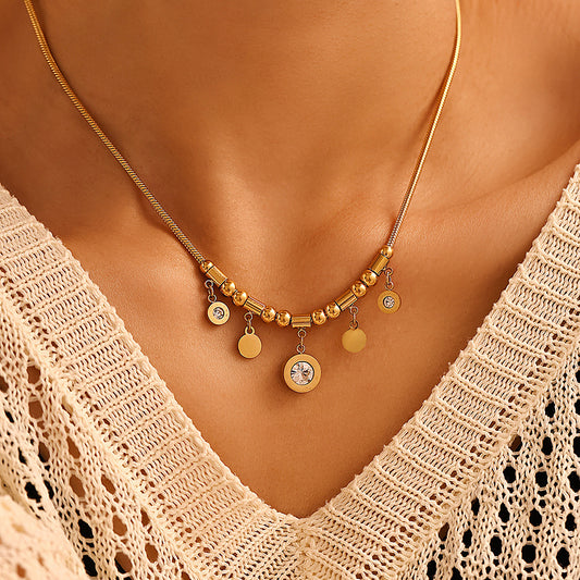 B廠【P1846】歐美時尚圓珠吊墜鈦鋼鍍18k真金項鍊女輕奢簡約鎖骨鏈現貨首飾 24.07-2