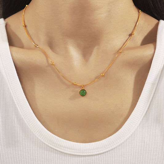 B廠【P1878】法式復古綠石吊墜項鍊小眾簡約可拆卸疊戴風不銹鋼鍍18k金鎖骨鏈 24.07-3