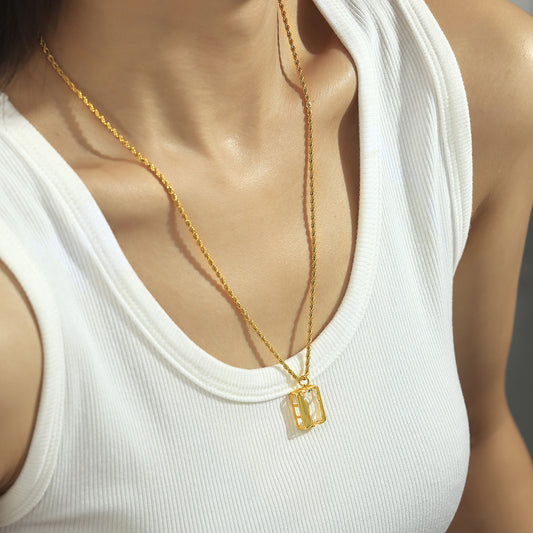 B廠【P1871】歐美跨境新款長方形鑲鋯石銅質吊墜鈦鋼鏈小眾疊戴風鍍18k金項鍊 24.07-3