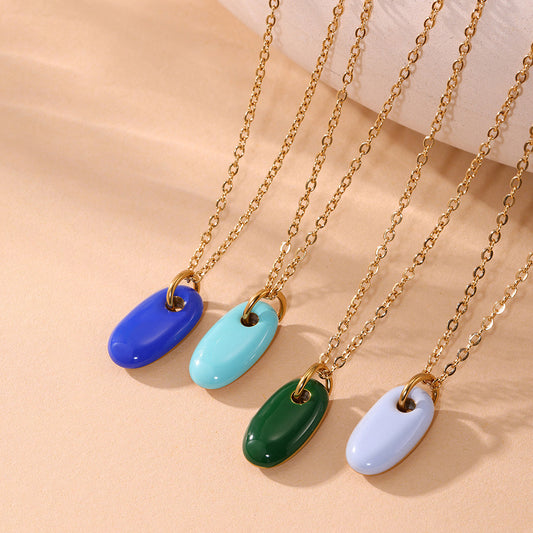 B廠【P188】不鏽鋼油畫多色滴油吊墜鎖骨項鍊可疊戴雙層項鍊不鏽鋼保色 25.07-1