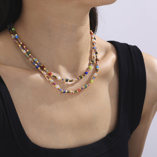B廠【P1868】多巴胺天然彩石項鍊串珠手工項鍊鈦鋼鍍18k金鎖骨鏈個性飾品 24.07-2
