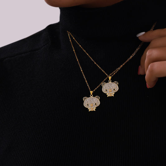 B廠【P1951】中東風銅鑲鋯石小熊吊墜女卡通優雅動物百搭鈦鋼項鍊可愛小眾飾品 24.04-4