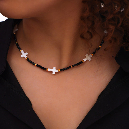 B廠【P1949-P1968】日韓新品小眾天然石手工串珠項鍊女十字架配件鈦鋼原子鏈飾品 24.04-4