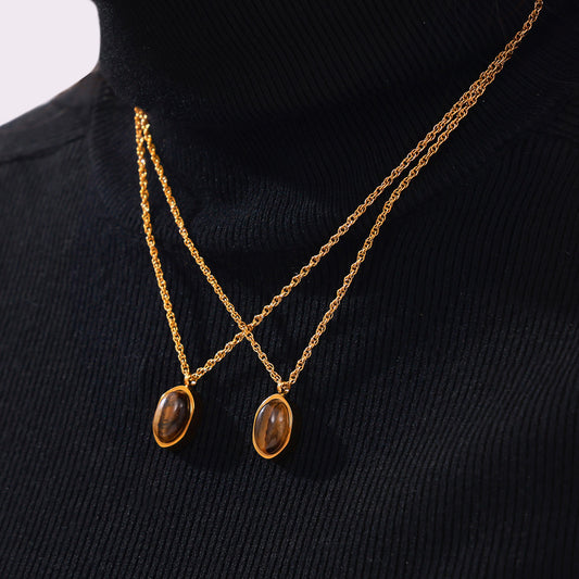 B廠【P1956-7】港風輕奢復古感幾何天然虎眼石吊墜項鍊女簡約氣質小眾鎖骨鏈飾品 24.04-4