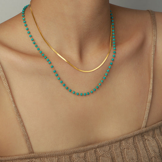 B廠【P1895】跨國歐美鈦鋼雙層鎖骨鏈女幾何設計感綠松石項鍊時尚百搭疊戴頸鍊 24.01-2
