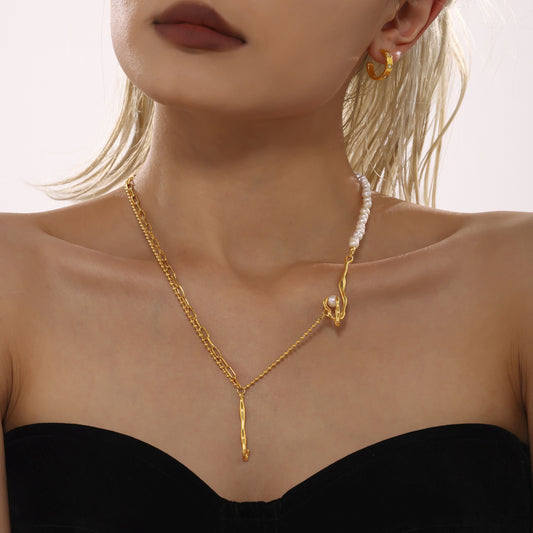 B廠【P1939】韓國冷淡風異形巴洛克淡水養殖珍珠項鍊時尚優雅不鏽鋼首飾 24.12-2