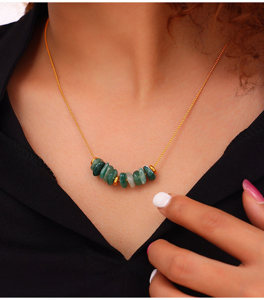 B廠【P1898】歐美天然石高級感鎖骨鍊女鈦鋼鍍18k真金項鍊ins琺瑯釉孔雀石項鍊 24.01-2