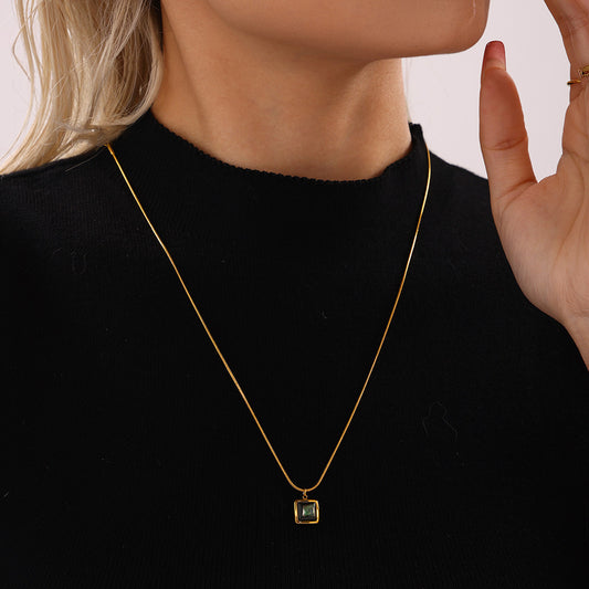 B廠【P2143】不鏽鋼飾品黑貝殼孔雀石方牌鎖骨鏈輕奢時尚通勤項鍊女配件 24.12-3